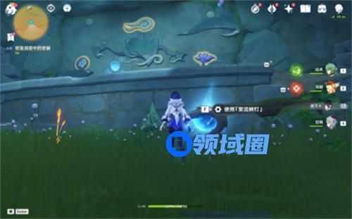 解开三号后往东方向的山洞跳下去就可以看到四号水珠,依旧是跟随指引前进即可,路上需要击败碰到的怪物,最后搭乘飞车解开最后一座【聚流映灯】。