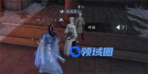 5、这次我们需要到城门之策,找到西域商人进行对话,选择我们随便选择就可以了,对话结束后询问旁边的西域商人;