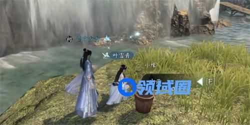 2、然后我们会在瀑布下面找到叶雪青,进行对话后,我们需要出示止血散;