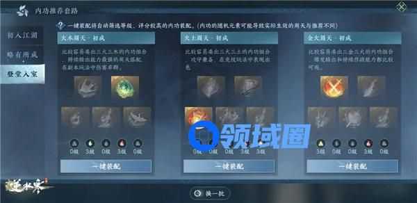 或者根据副词条、特性来装配内功,比如追求极致的攻击/防守/抗性/克敌等,玩出花来;