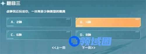 3、问题:战争风云玩法中,一共有多少种类型的载具?(B,4种)
