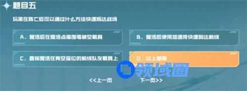 5、问题:玩家在阵亡后可以通过什么方法快速抵达战场?(D,以上都是)