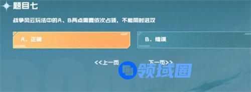 7、问题:战争风云玩法中的A、B两点需要依次占领,不能同时进攻?(A,正确)