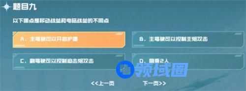 9、问题:以下哪点是移动战垒和电磁战参的不同点?(A,主驾驶可以开启护盾)