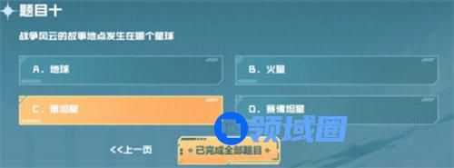 10、问题:战争风云的故事地点发生在哪个星球?(C,泰坦星)