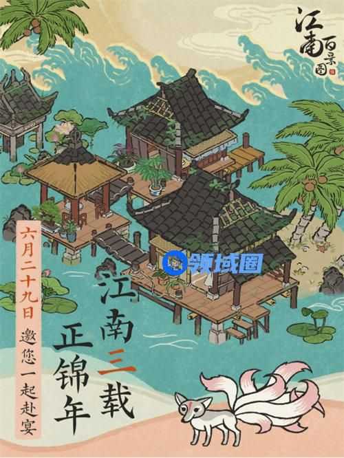 7月2日起,《江南百景图》正式开启「三周年庆典」——结伴闯关双人探险「鲤跃记」,前往「椰子岛」共赴盛宴,解锁「三周年限定福利」、翻阅「三周年府志」,还有各式全新建筑不容错过。