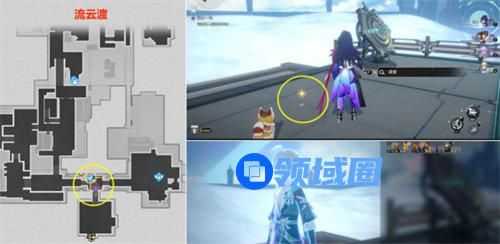 4、进入副本开始对话完后,需要自流云渡中调查线索,在前面广场这里,调查下图3处位置。