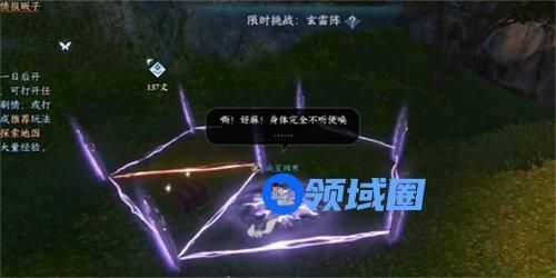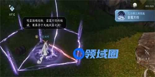 2、我们到达目的地之后,进入到限时挑战玄雷阵当中,接着我们就会被雷电到获取到技能雷霆万钧。