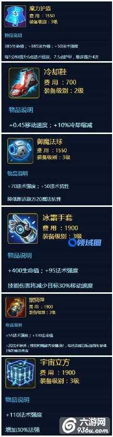 推荐出装:魔力护盾、冷却鞋、御魔法球、冰霜手套、燃烧弹、宇宙立方