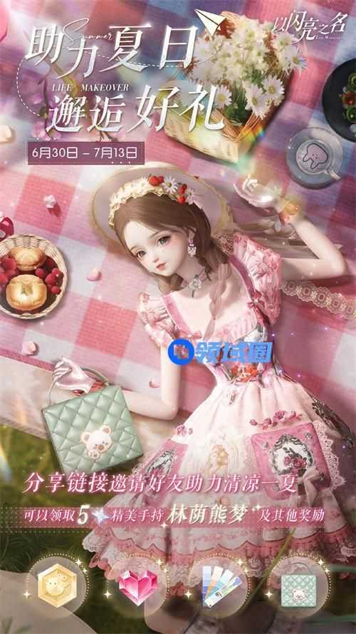 夏日助力是游戏内即将在6月30日上线的全新活动,奖励为一个5星甜萌手持,玩法也很简单,就是邀请其他玩家注册游玩,积累到达一定数量后就可领取了,就和拼多多砍一刀、拉新用户注册白嫖金额一样。官方借玩家之手,让更多的人纷纷入坑。游戏玩法丰富且自由度高,在服装的设计方面更是深得不少女性玩家的喜爱,人物模型可亲手捏造,尽情尝试多种不同的穿搭风格,塑造出一套套新样貌,如果你喜欢换装手游,它是你不二的选择,除此之外还能体验时尚的生活模拟体验,接下来为大家介绍一下以闪亮之名夏日助力活动一览。
