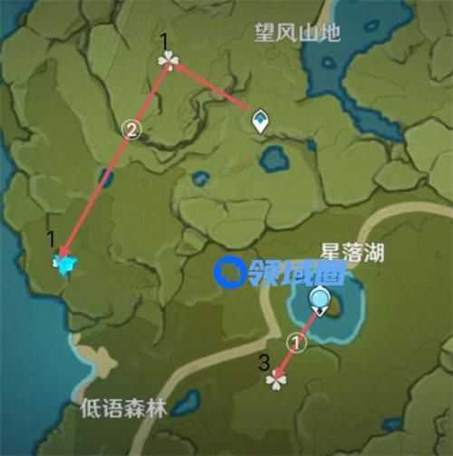 蒙德地区蒲公英籽的采集位置比较分散,下面为大家推荐几个比较容易收集的位置,推荐选择砂糖和鹿野院平藏进行收集,采集路线如下: