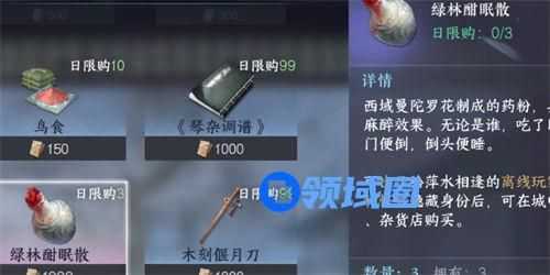 5、随后玩家需要在杂货铺购买3个绿林酣眠散,之后即可贩卖玩家了。