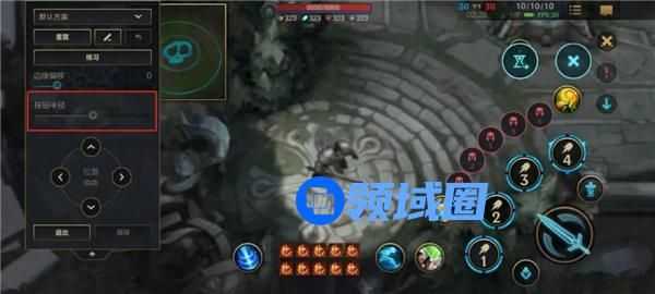 点击右上角的【按键自定义】,再点击左下角的移动轮盘,把按钮半径缩小,推荐缩小至50-70,也可以直接60,这样的走位会更精准更灵敏。