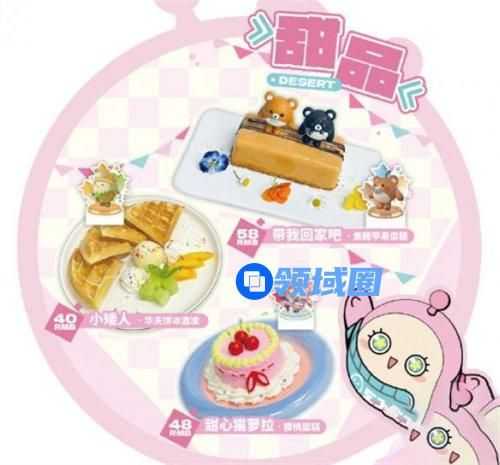 美食备齐蛋友欢聚!主题店菜单含5款主食、8款甜品及6款饮品。蛋仔们餐饮消费后还可获得对应周边好礼