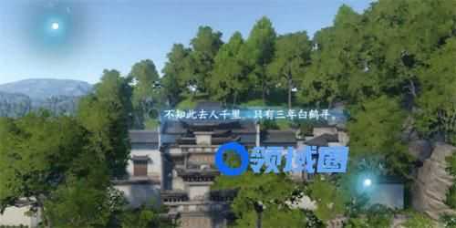 3、接着跟随镜头进行移动,来到空中俯瞰孔庙全景,点击光点,选择"回廊"作为意象写出第二句词。