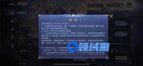 (1)完成每日登录或5v5对局任务,可获得“宝箱钥匙”。每消耗1把宝箱钥匙可解锁任意1个主宰宝箱,解锁倒计时结束后再次返回活动界面,点击宝箱即可开启获得奖励;宝箱品级越高,解锁耗时越长,开启获得的主宰能量越多;宝箱品级由低到高为:绿色(耗时4小时)-蓝色( 耗时6小时 )-紫色(耗时8小时 )-橙色(耗时12小时);同一时间仅可进行一个宝箱的解锁,每开启一个宝箱,会按顺序继续填充下一宝箱;玩家可通过“预览”按钮查看宝箱序列,以合理安排解锁顺序;
