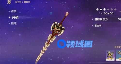 物理伤害五星双手剑,面板属性高同时武器特效还可以提供攻击力加成,可以进一步提升就是的输出,而且叠被动的效果与菲米尼的技能机制也十分契合。