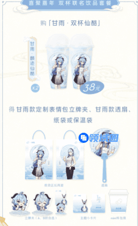 购「甘雨·双杯仙酪」,得甘雨款定制表情包立牌夹、甘雨款透扇、纸袋或保温袋;