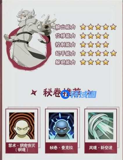 二技能前摇较小,防反能够吸收除了漩涡鸣人「九喇嘛连结」的风遁·螺旋手里剑以外任何忍者的技能,及部分秘卷、通灵兽技能,在对技能时拥有较大优势。
