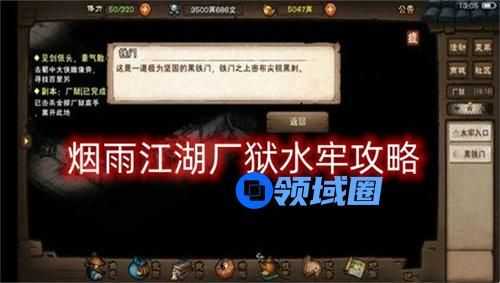 以上就是烟雨江湖厂狱水牢玩法攻略的全部内容,更多精彩内容攻略请持续关注领域圈,小编将持续更新更多相关攻略。
