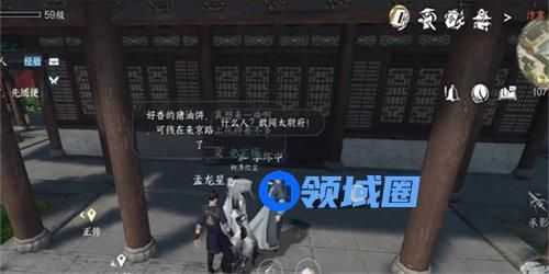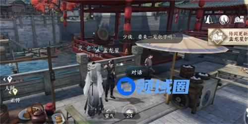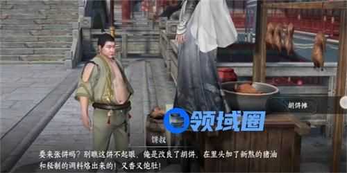 2、接着我们就到胡饼摊上,去购买到煎饼,把煎饼出示给孟龙星即可。