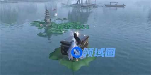 3、之后玩家需要跟随指引来到湖中的一朵黄色的莲花这里来开启挑战,之后即可获得宝箱;