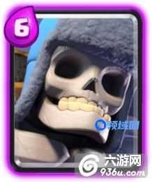优点:血厚,死亡后炸弹伤害高。作为一张6费的卡牌,骷髅巨人一出场肯定是能够吸引对面兵种集火的。因为其一旦到塔下,结合它的高血量能够打掉很多伤害,虽然其伤害不是很高,但死亡后的炸弹伤害是非常高的。而且炸弹能够炸到空中单位。除了血特别厚的单位,一般的兵种被这么一炸非死即残啊。
