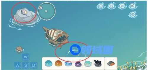 3、然后驾驶小船来到地图最左上角,即可看到海螺。