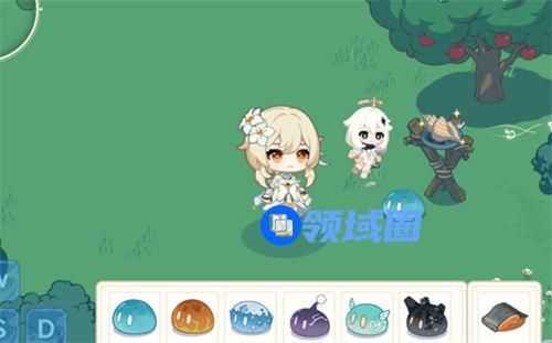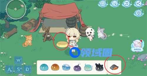 拖动风史莱姆到落叶上,将其吹走就能发现海螺,点击即可获得。