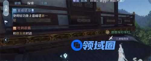 2、在信中可以得知信在杭州雷锋塔塔顶,前往杭州雷峰塔使用轻功可以爬到塔顶,或者也可以利用周围灯笼的钩绳登上塔顶;