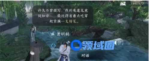 3、到杭州1348.872处向NPC“萧明鹤”提交“文房四宝”并对话。