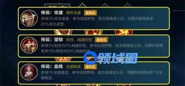 此外还有3个效果不同但叠加方式相同的新符文。传说:攻速提供额外攻速,传说:韧性提供额外韧性和减速抗性,传说:血统提供额外的全能吸血。可以通过击败小兵、野怪、英雄叠加加成效果。