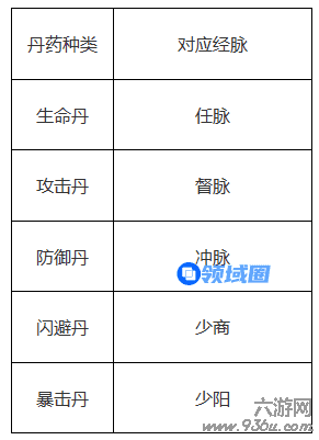 每一种经脉对应一种类型的丹药,吃掉相应的丹药会增加相应经脉的修炼度。
