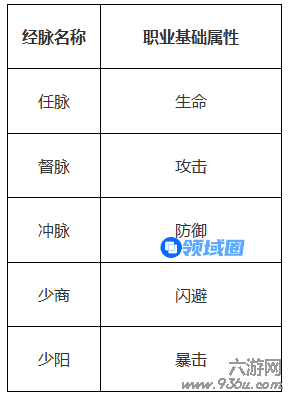 每个角色都有5条经脉可以修炼,而且每一条经脉对应着一种属性,经脉等级提升后角色自身可以增加相应的属性。
