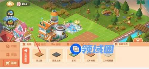 2、我们点击右下方的建造进入页面下图的页面,我们先把刚才那个区域的草坪换成土地;