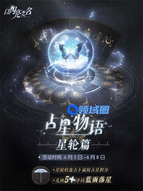 占星物语•星轮篇将于6月5日10:30再度来袭,参与占星即可获得占星礼包奖励和占星积分,累积占星积分,可领取五星手持物【蓝雨落星】、拍照特效【许愿流星】、钻石*30及多种材料道具奖励!