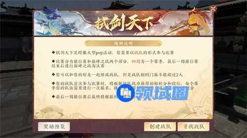 ◆ 您可以和您的好友一起组成战队,但是战队相同门派不能超过2人