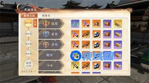 少侠可以在活动界面,点击【奖励预览】查看巅峰之战奖励与周排名奖励。