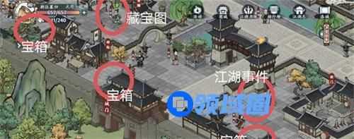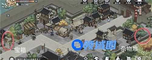 进入洛城的右上角区域,有一个“白雀楼”,玩家进入白雀楼院子,在右侧的位置角落有一个宝箱。