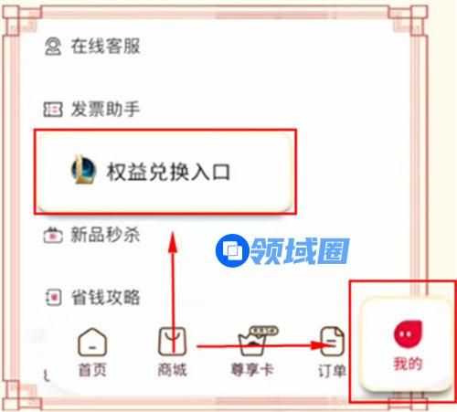 (3)接着点击按钮,在下图页面找到权益兑换入口;