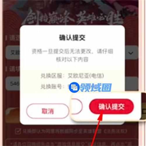 (6)最后点击确认提交,游戏礼品即可在游戏内领取成功;