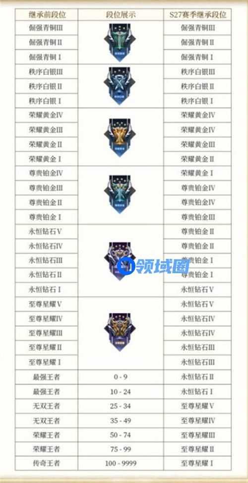 以上就是王者荣耀s33赛季段位继承表分享的全部内容,更多精彩内容攻略请持续关注领域圈,小编将持续更新更多相关攻略。