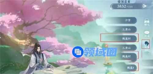 1.好感-选择师兄【叶问舟】,点击【相会】【同游】-【桃溪村】完成同游任务。