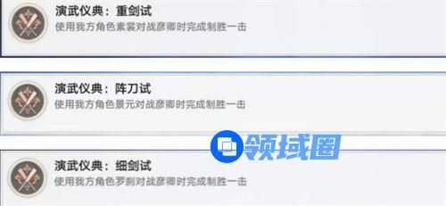 分别用素裳,景元,罗刹击败彦卿,即可分别获得成就“演武仪典:重剑试““演武仪典:阵刀试““演武仪典:细剑试“。(可在忘却之庭—“仙舟回忆其二“中完成)