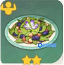 描述:经过派蒙苦思冥想改良后的兰那罗沙拉,但实际上在须弥却是早已有之的做法。墩墩桃十分鲜脆,替代过甜白糖的是口感清爽的薄荷,为增加风味放入略加挤压的须弥蔷薇。是兼具味觉和嗅觉双重享受的清新菜肴。