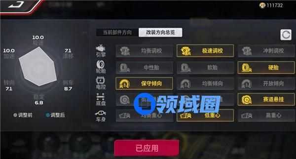 在前期改装材料不足时,重点推荐针对引擎 、电控、轮胎三个部位进行强化。请尽情享受布加迪给你带来的推背感吧!