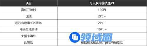 在育成的马娘或支援卡中触发的事件内也有可能会获得技能Pt。
