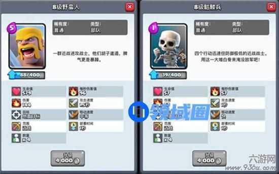 野蛮人主要用于拦截那些过了河的部队,只要在地上走只要不是只打建筑,这样的兵种就能被野蛮人有效地拦截住。而骷髅兵则用于拦截那些在只打建筑的地面部队,野猪巨人这样的大型生物遇到骷髅也是很容易被啃光的。