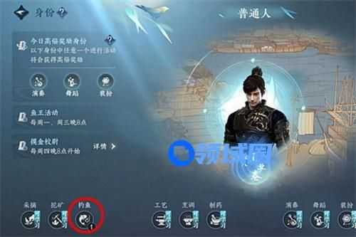 2、点击左下方钓鱼,钓鱼界面可以观察到鱼的类型和获取方式以及产地。