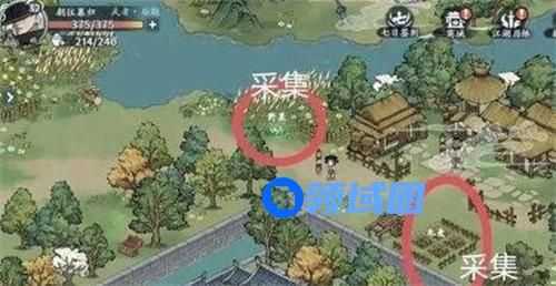 4、去城外后我们会在河边找到一个藏宝图,边上有两个采集任务。